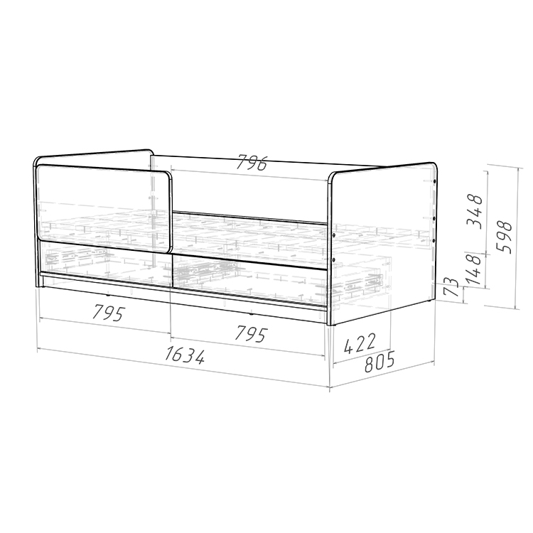 Длина/Ширина/Высота (мм) 1634 × 805 × 600